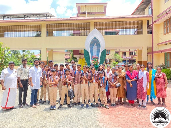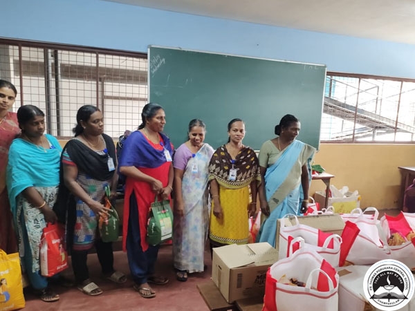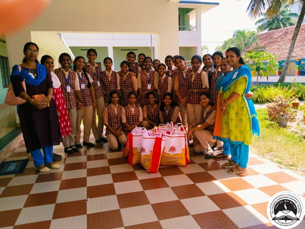 A group of  children along with Fr Principal, teachers, non teaching staff amd PTA representatives visited 10 poor homes in Allapuzha and Changanacherry.  The collected items were distributed in the poor homes.